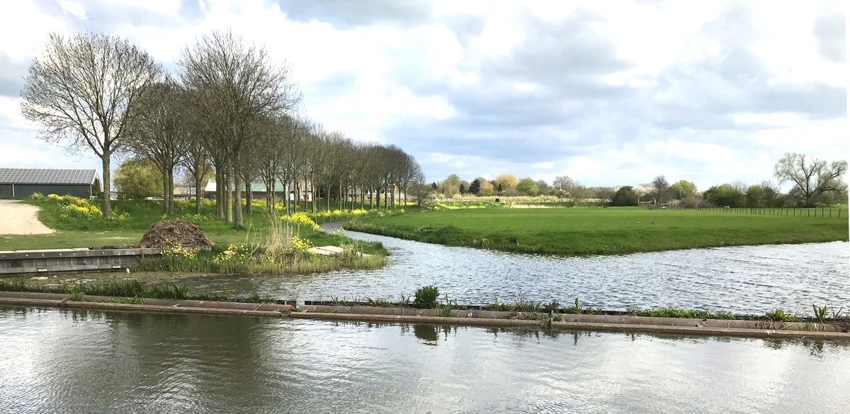 Loop verder over de dijk totdat je rechts de Linge ziet. Dit kun je niet missen! Aan de linkeroever is de Siemenstraat waar je ook begonnen bent.