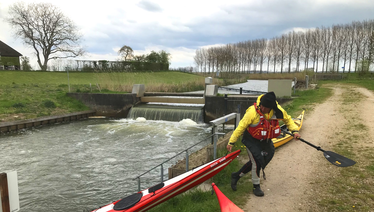 Op de Linge moet je driemaal overdragen bij een stuw.