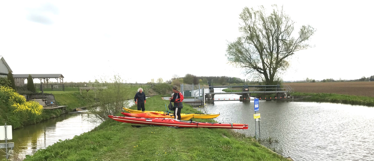 Punt 1: dit is de startplek van de hele route. De instapplek is bij een stuwtje in een zijsloot. Parkeren in berm.