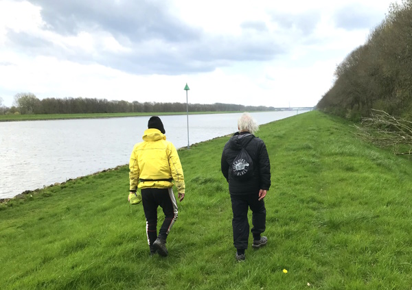 Wandelend over de dijk van het Amsterdam-Rijnkanaal, terug naar het startpunt.