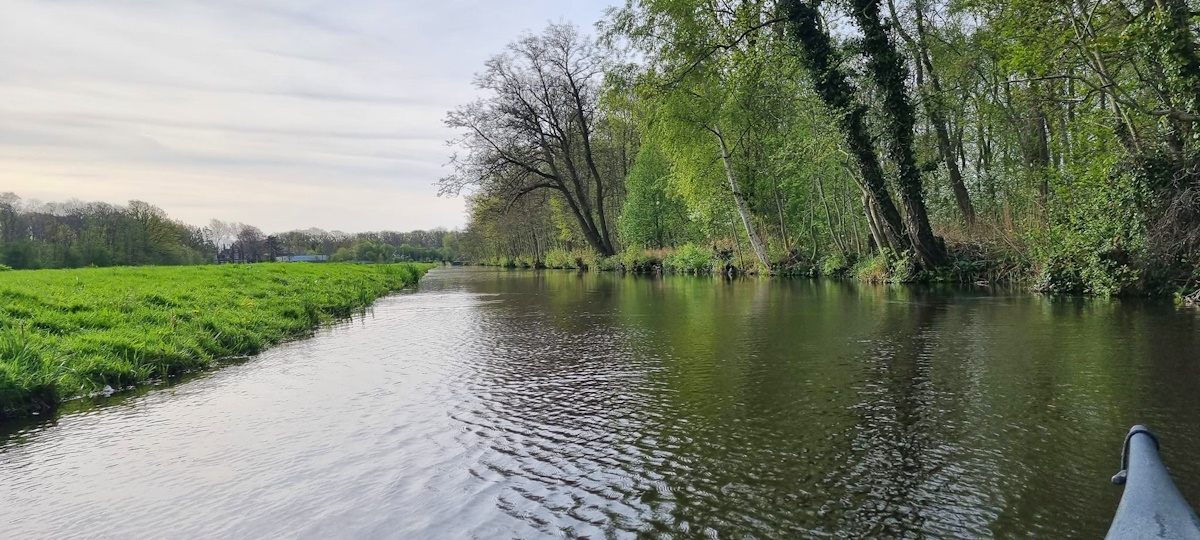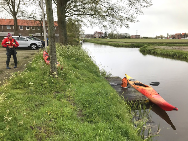 dan kom je uit bij de Zandsloot. Hier is een lage kant waar je goed in kunt stappen.