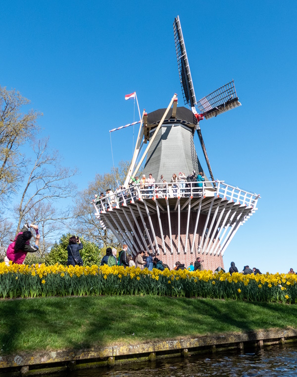 Instappen bij de Keukenhofmolen voor de boottour langs de bollenvelden
