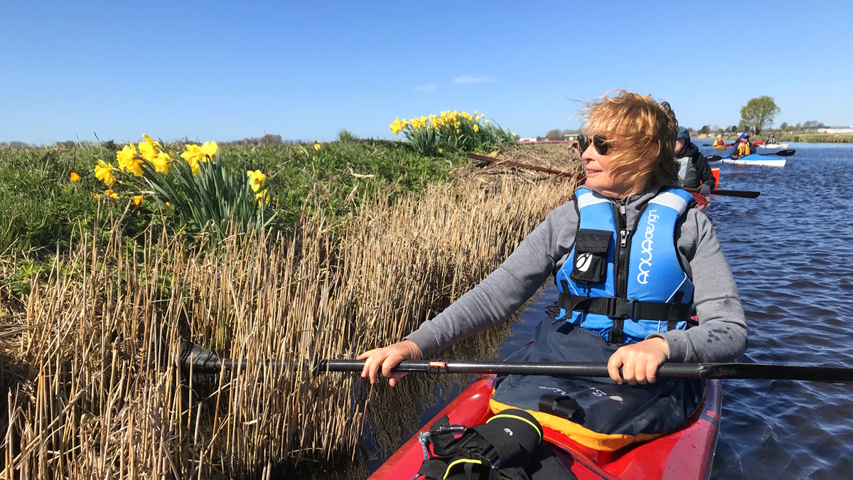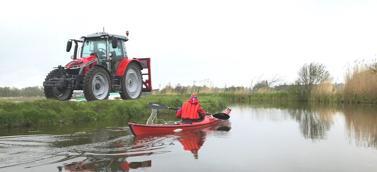 In een kajak zit je net te laag en kun je niet altijd goed over de velden kijken.