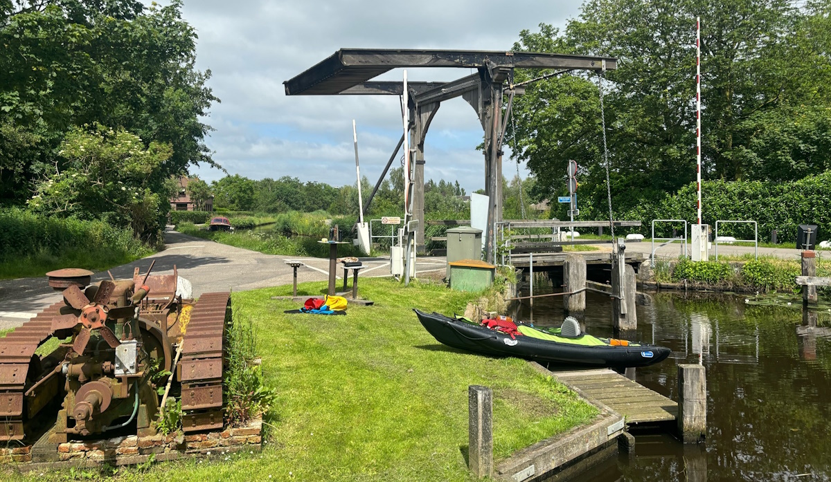 Lage brug in Den Horn. Kanosteigers zijn aanwezig